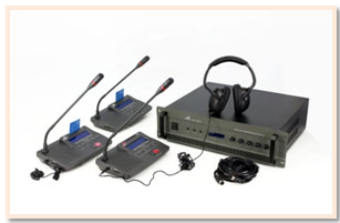 یک ست کامل شامل منبع تغذیه و کنترل، کنسول میکروفن ریاست جلسه و حداقل ۴ عدد کنسول میکروفن شرکت کننده به همراه نرم افزار کامپیوتر(نرم افزار رایگان) و دور بین مخصوص، یک ست کامل و مترجم