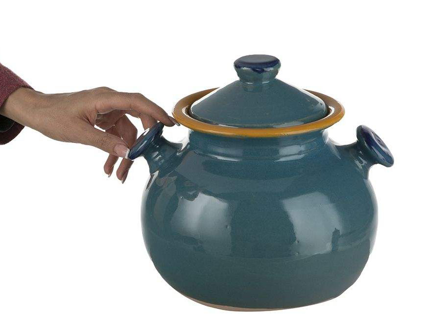 قابلمه سفالی مدل دسته دار فیروزه ای با کیفیت محصولی زیبا و مناسب برا پخت انواع غذاهای اصیل ایرانی، چلو خورشت و … می باشد. این ظرف دارای ابعاد ۲۳ × ۲۲ × ۲۲ سانتیمتر و روکش نیم لعابی است. شاید وزن آن با توجه به ابعاد و در مقایسه با سایر ظروف مشابهی که از جنس استیل، مس و یا شیشه هستند، سنگین بهنظر برسد، اما قطعا طراحی منحصربهفرد آن ارزش این را دارد که چیدمان زیبای میزهای پذیرایی شما را تکمیل کند.