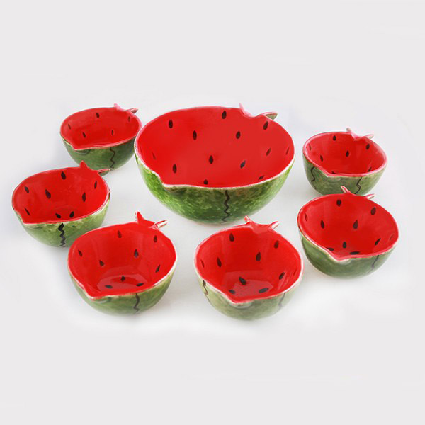 کاسه سرامیکی طرح هندوانه مدل انار مجموعه هفت عددی