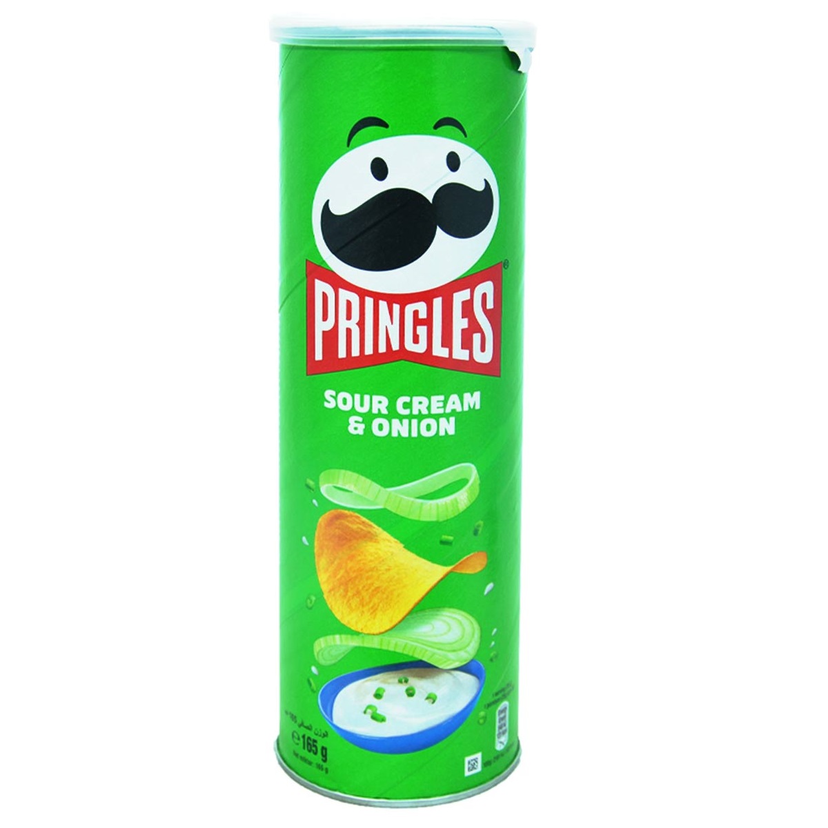 چیپس پرینگرز با طعم خاص خامه ترش و پیاز، بسیار دوست داشتنی است و یکی از تنقلات پرطرفدار بشمار میرود.چیپس پرینگلز بدون کلسترول و و چربی ترانس میباشد و گزینه ای مناسب برای افراد گیاهخوار است.